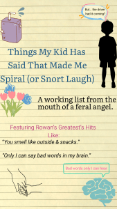 This is a growing list of things Rowan has said that either cracked my heart open or made me stare into space like I was buffering.